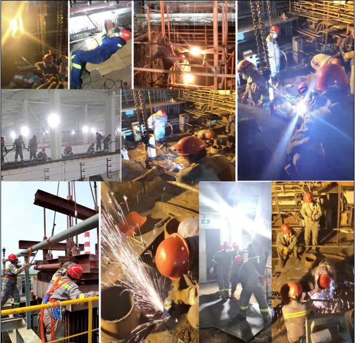檢修現(xiàn)場,一張張沾滿油污的笑臉道出了發(fā)展的喜悅,一雙雙粗壯的雙手展示著一段段創(chuàng)業(yè)的歷程,一道道電焊弧光演奏出降本的音符,飛濺的焊花噴發(fā)著維修人奮進(jìn)的熱情。向奮斗在一線平凡而又偉大的維修人致敬!